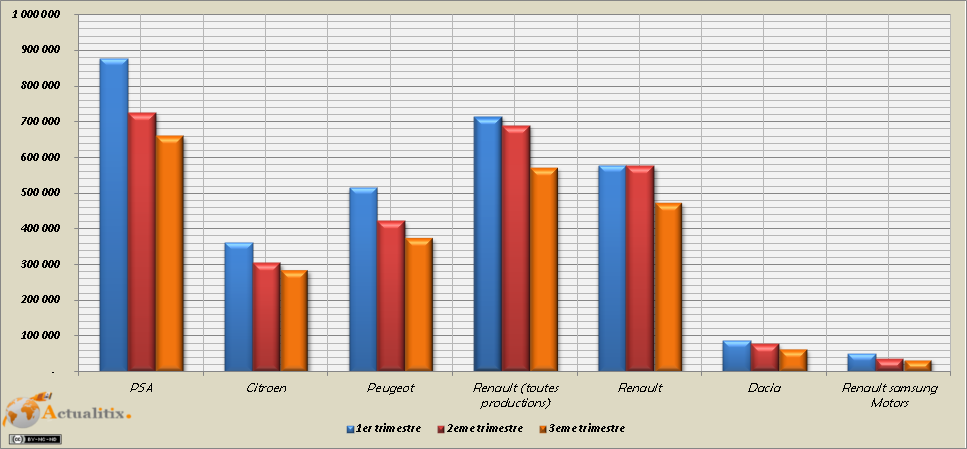 Les données proviennent du Comité des Constructeurs Français d’Automobiles et représentent les trois premiers trimestres de l’année 2012 publiés en novembre de la même année. Mais, je pense que chaque année est représentée par trois trimestres uniquement puisque 2010 et 2011 n’ont connus que trois publications également.